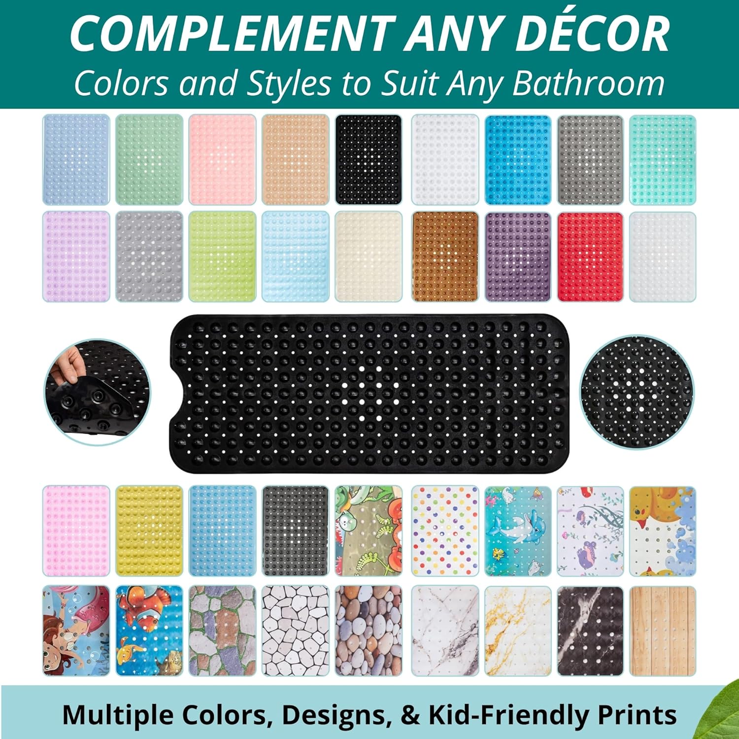 - Who Needs Slippery & Small Rubber Mats that put your safety at risk? This ergonomic shower mat comes in extra large, a full 40" x 16" size, to protectively hug your bathtub floor and prevent accidental falls