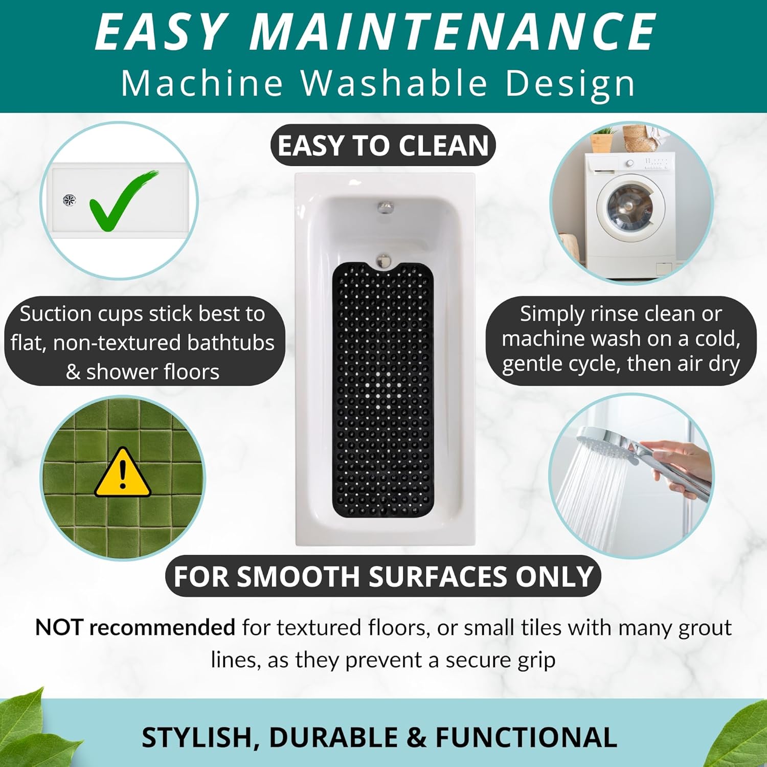 ENKOSI Bath Mat – 40 x 16 Inch Extra Long Non Slip Bathtub Mat – Anti Slip Black Shower Mat with Suction Cups – Bathroom Mat for Tub and Smooth Shower Floors (Black 40x16)