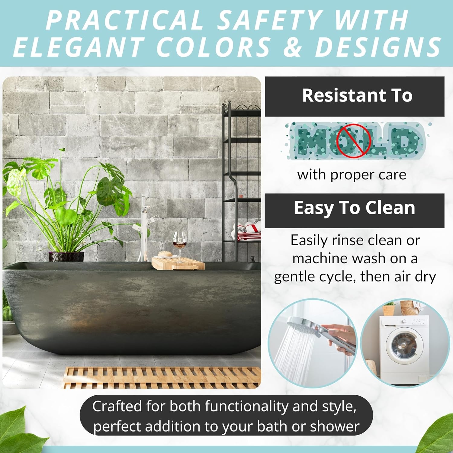 - Modern, Sturdy & Made To Last: Complement your stylish bath rugs décor with an eye-catching bath mat in many color variations. Place it in the washing machine, to keep it fresh, clean and hygienic for a long time!