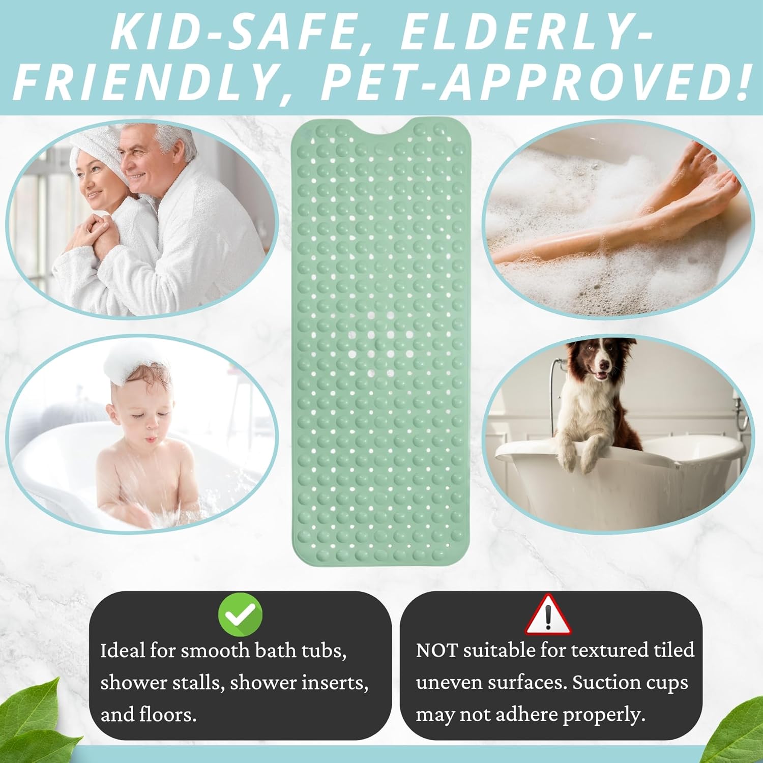 - Great For The Elderly, The Babies & Young Children: Nonslip & generously sized, the Enkosi bath mat ensures the safe bathing & showering of your baby, toddler, as well as your elderly parents or grandparents.