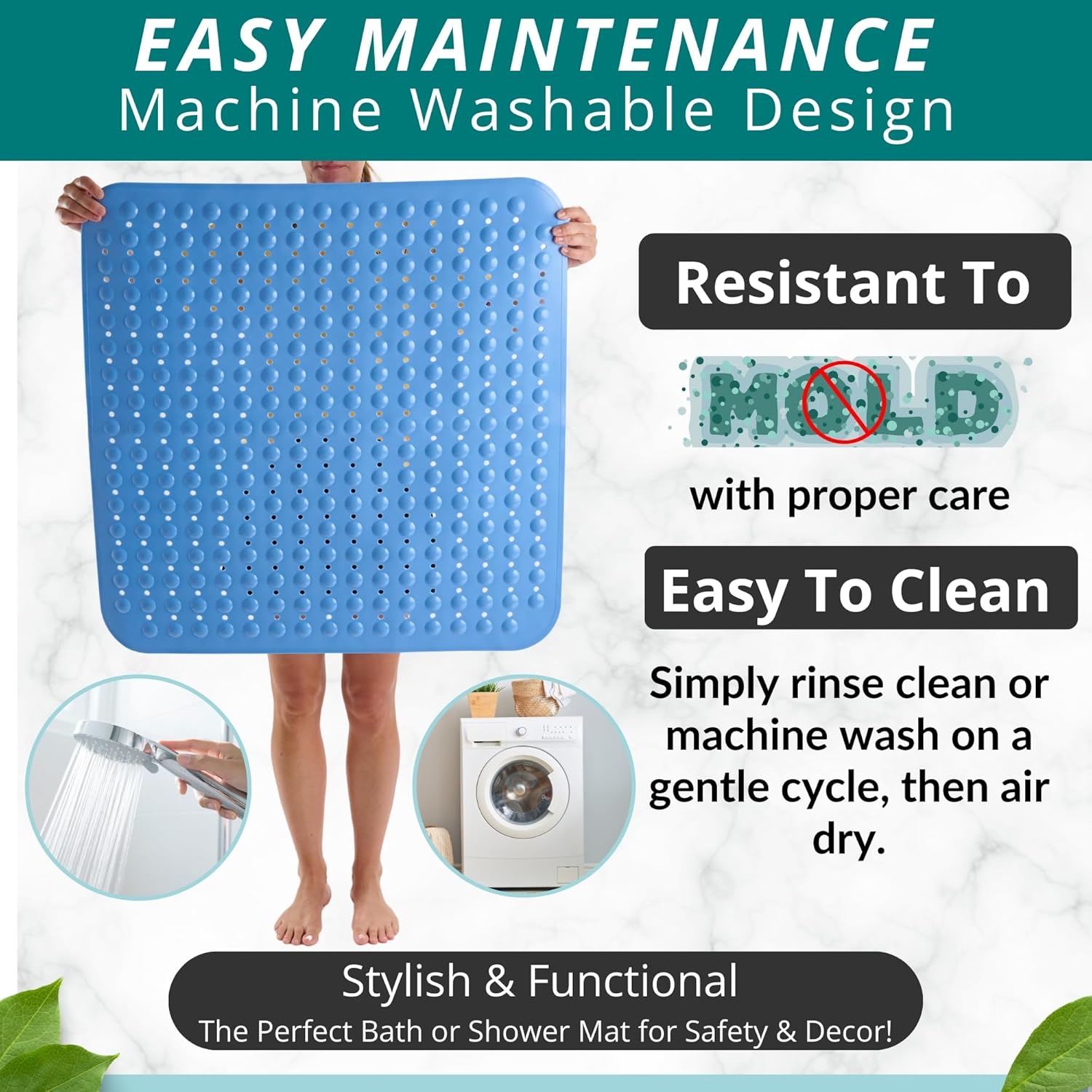 ENKOSI Extra Large Square Non Slip Shower Mat - 31 x 31-inch XL Bathroom Shower Mat - Square Shower Matts for Shower Stall Floors | Secure Suction Cups and Drain Holes (31x31 Aqua Blue)