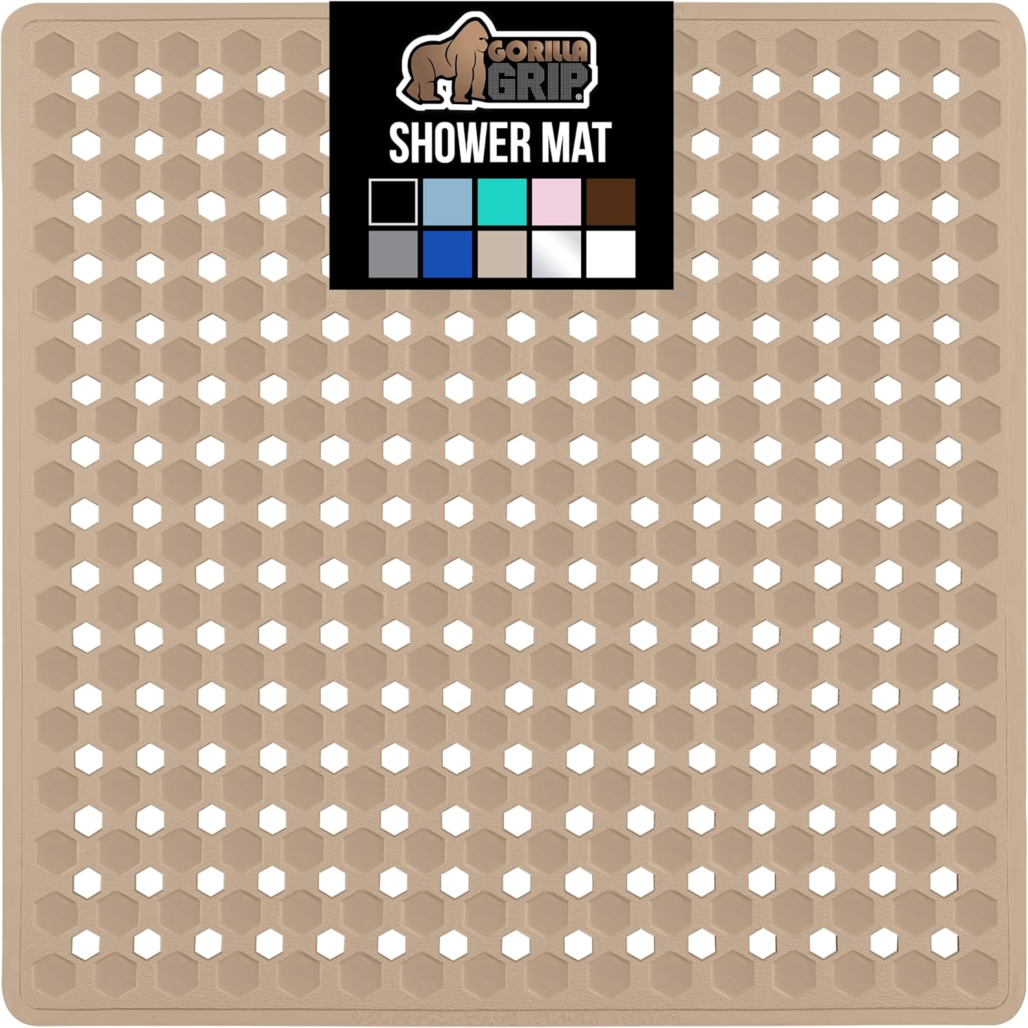 GORILLA GRIP Patented Square Shower Stall Mat, Small Bathtub Floor Mats for Stand Up Showers, Suction Cups and Drainage Holes, Machine Wash, Soft on Feet, Bathroom Accessories 21x21 Inch, Beige Opaque