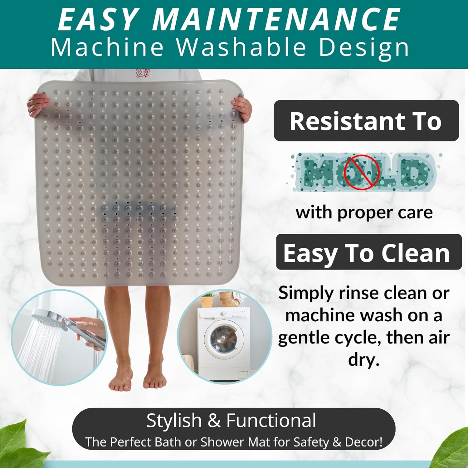 - NON-SLIP MAT enjoy 360-degree protection in your shower; prevent falls with an extra large Square bathroom shower bath mat for larger shower stalls with pliable suction cups for secure sticking capacity to help securely hold the shower mat to shower stall floors for safe anti-slip protection