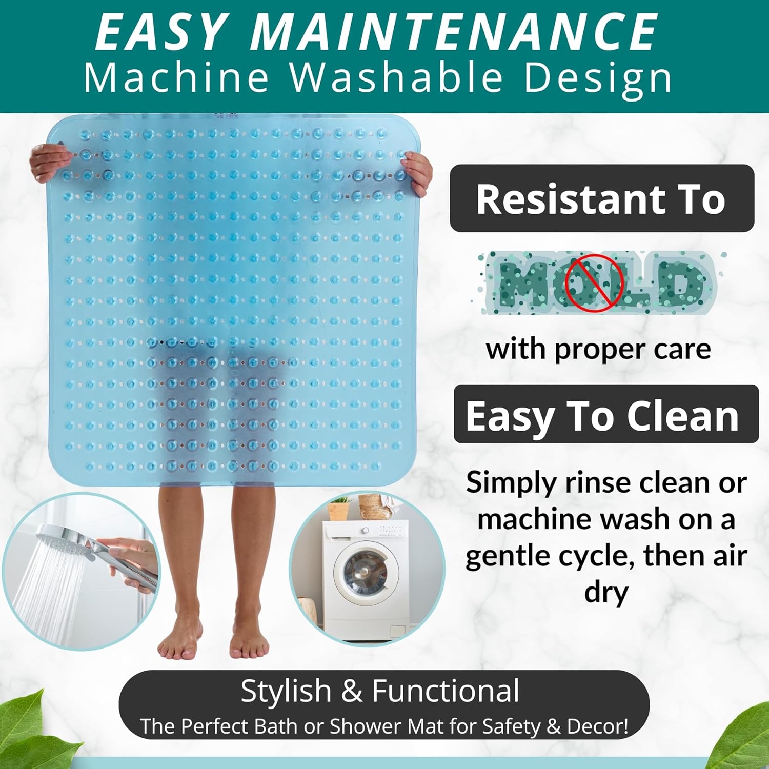ENKOSI Extra Large Square Non Slip Shower Mat - 31 x 31-inch XL Bathroom Shower Mat - Square Shower Matts for Shower Stall Floors | Secure Suction Cups and Drain Holes (31x31 Clear Blue)