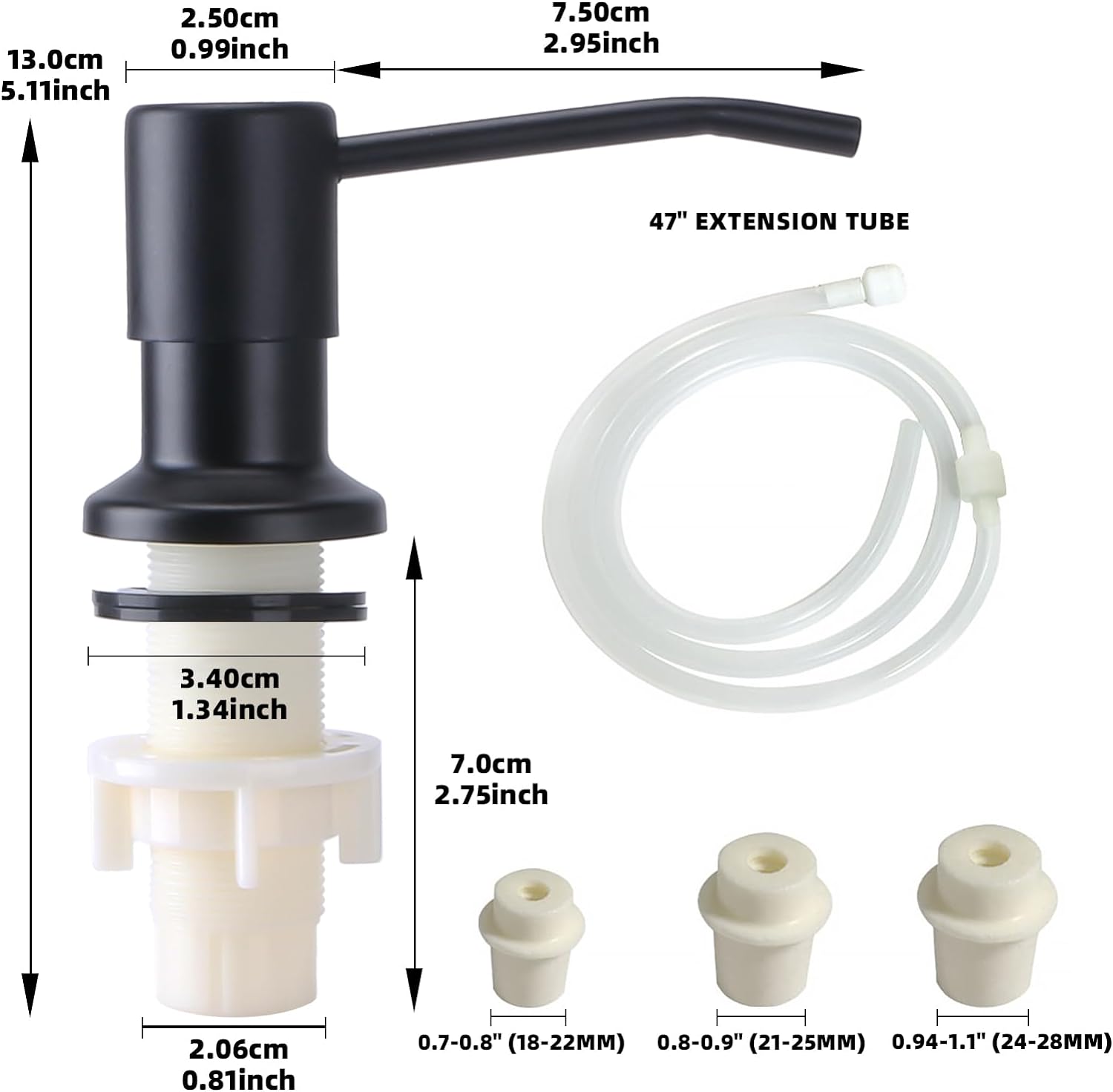Soap Dispenser for Kitchen Sink, Built in Sink Soap Dispenser, Countertop Soap Dispenser Pump with 47" Extension Tube kit, No Need to Fill Little Bottle Again, Black
