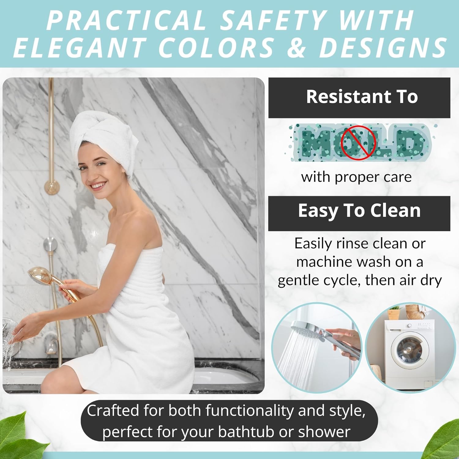 - DURABLE HIGH-QUALITY MATERIAL Crafted from durable safe PVC materials to withstand daily use and maintain quality. Resistant to wear and tear, ensuring longevity and continued effectiveness and safety (Suitable for use in smooth non-textured bathtubs, showers, only)