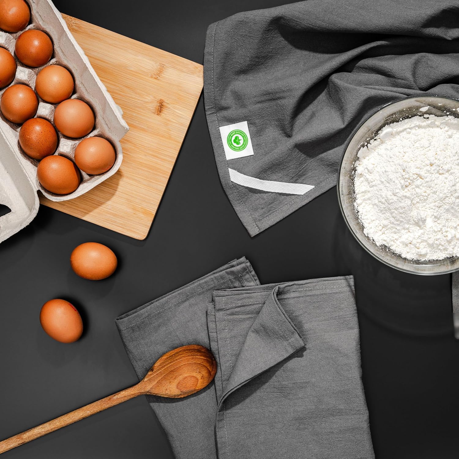 - Organic Gray Flour Sack Towels - These gray flour sack kitchen towels are made with Certified Organic Cotton. You can safely use them for covering food, baking bread, as kitchen towels, for cleaning, and a variety of other purposes. These flour sack towels are perfectly hemmed on all four sides and made of high-quality cotton so you can wash and reuse them thousands of times without having to worry about wear and tear.