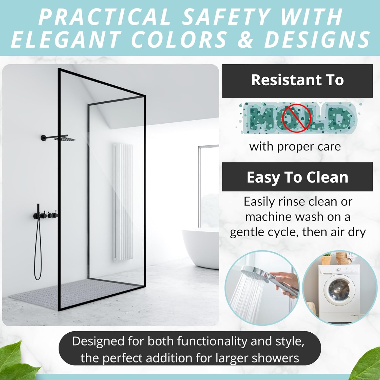 ENKOSI Extra Large Shower Mat Non Slip - 47 x 32 inch - XL Bathroom Shower Mat - Large Shower Matts for Shower Stall Floors - Secure Suction Cups and Drain Holes (47x32 Grey)