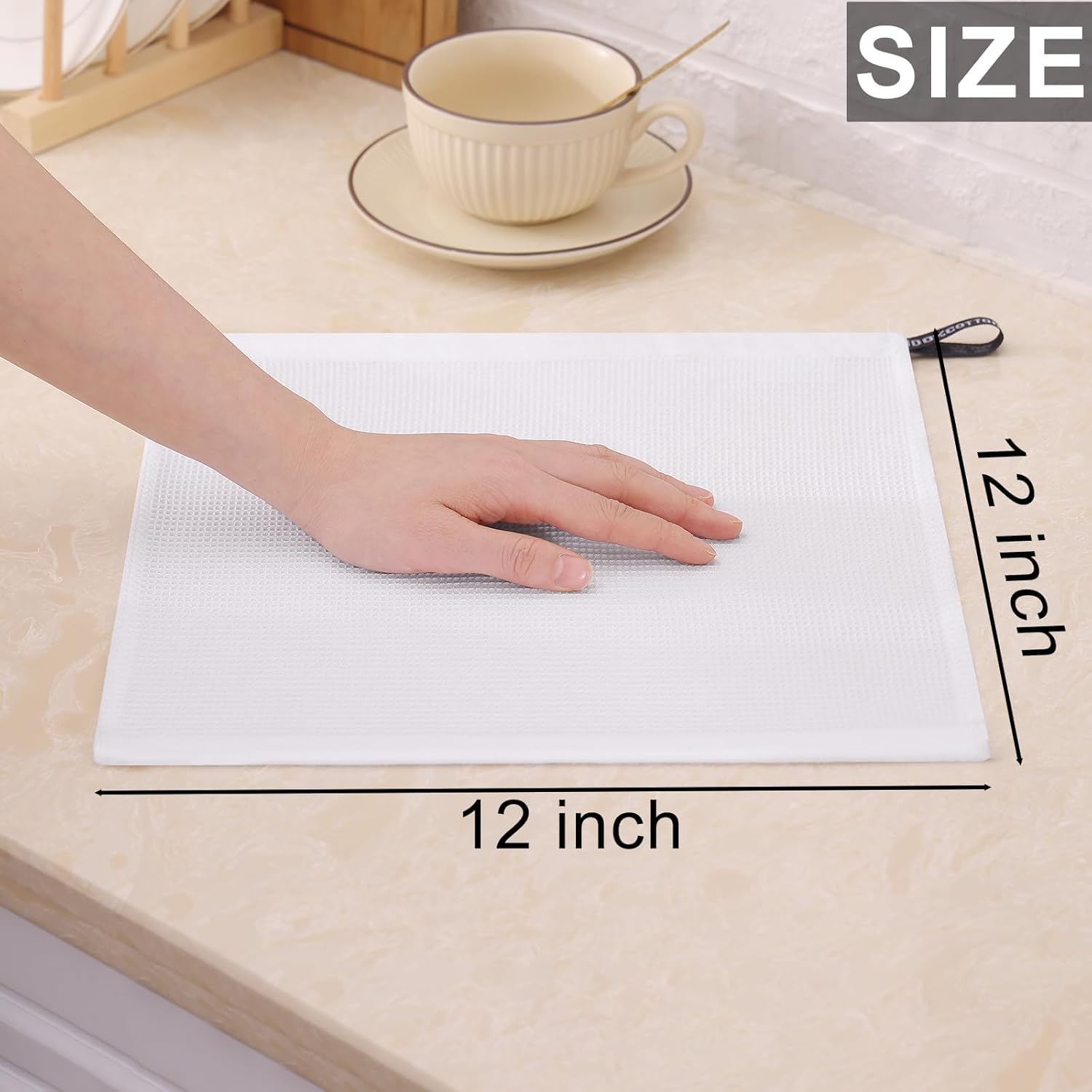 Homaxy 100% Cotton Waffle Weave Dish Cloths - 12 Pack Soft and Absorbent Dish Towels - 12 x 12 Inches Quick Dry Dish Rags - White