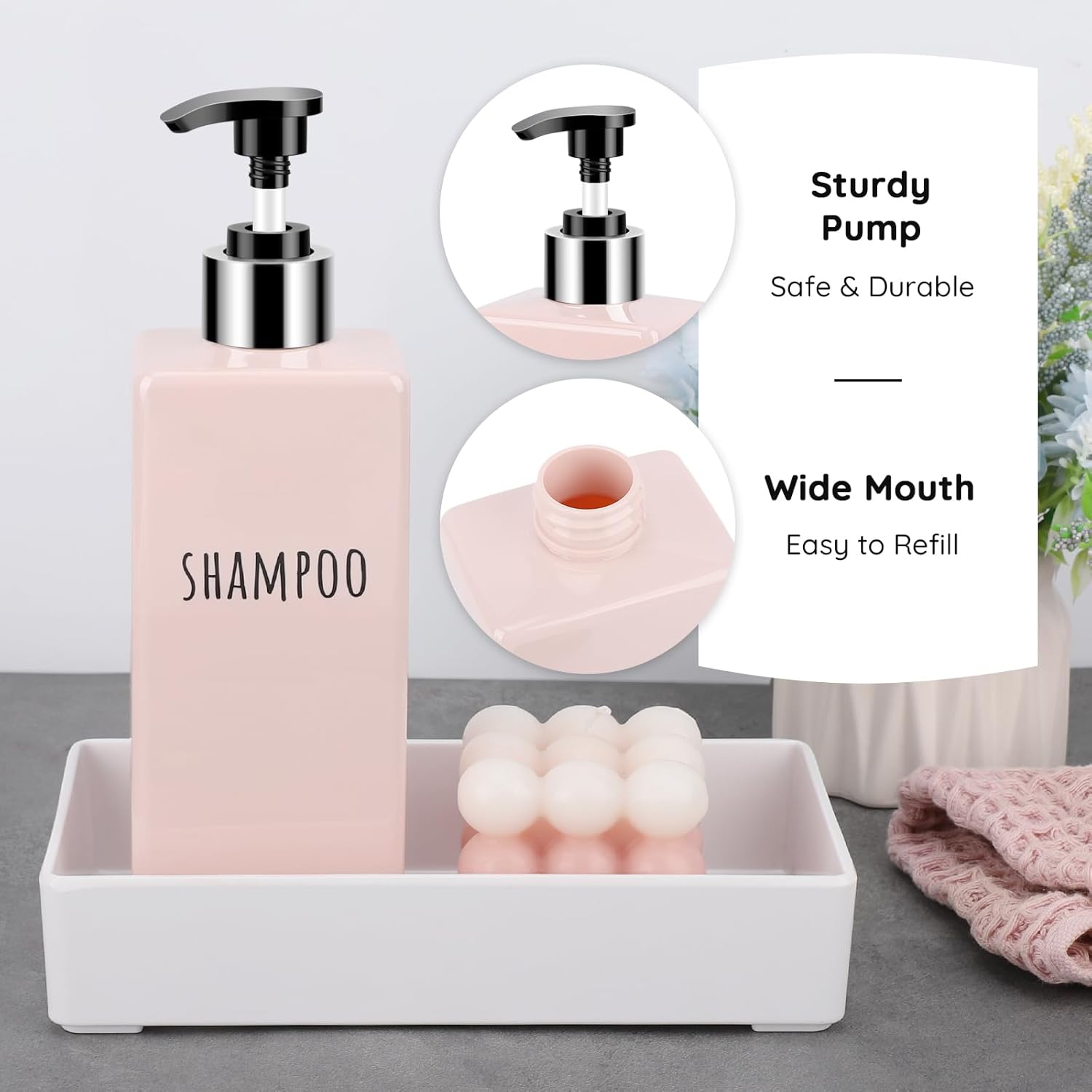 Segbeauty 16.9oz Shower Bottles Refillable, 3 Pack of Shampoo and Conditioner Bottles for Bathroom, 500ml Plastic Square Soap Dispenser Set Lotion Dispenser Empty Press Pump Bottle Pink