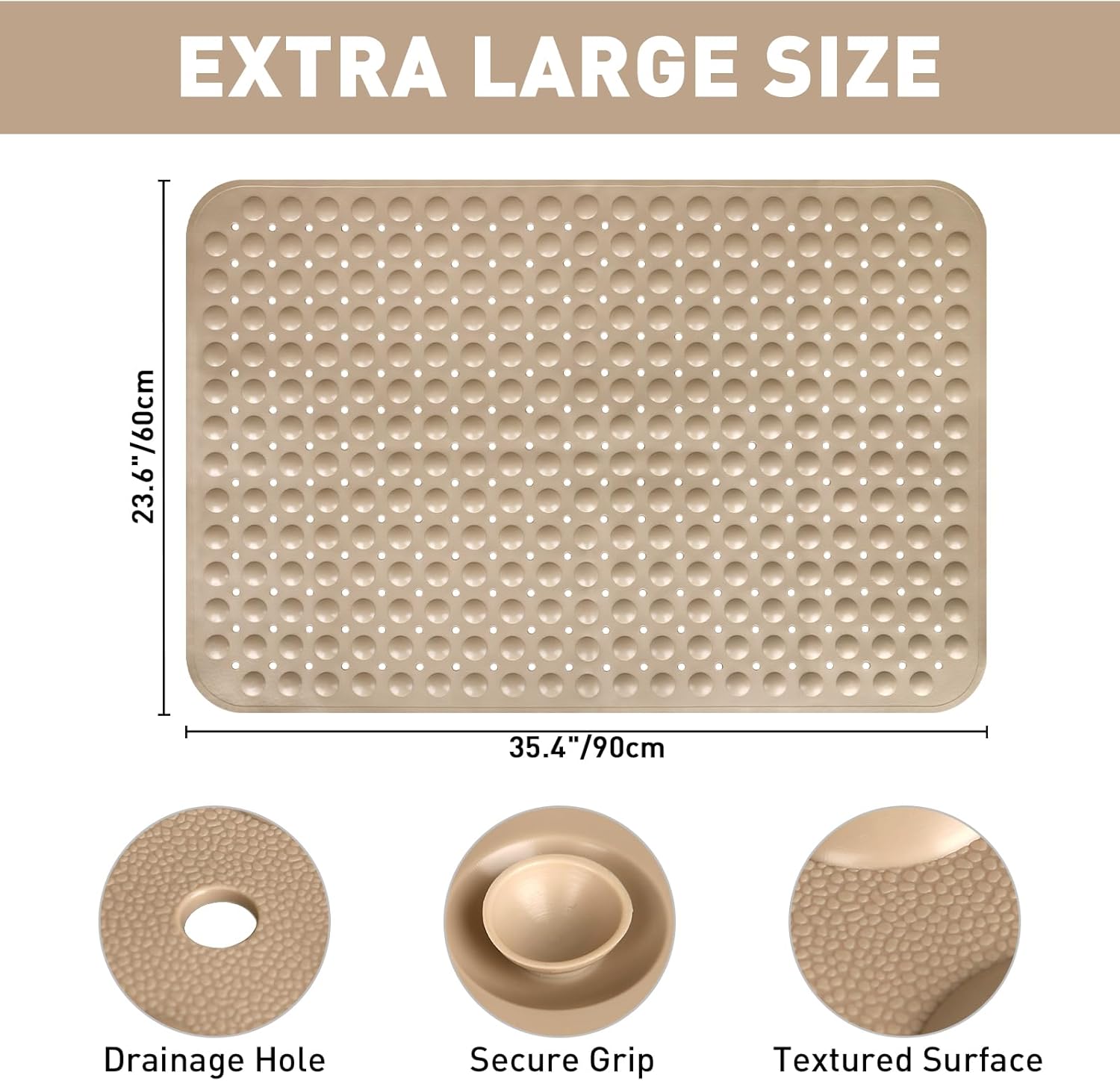 - EXTRA LARGE SIZE: The size of the shower mats for inside is 47.2 x 31.5 inch, which is very suitable for large stand up or walk in showers. It is heavier and thicker than other anti slip shower mat and is perfect for elderly, pregnant woman, gym, spa and commercial