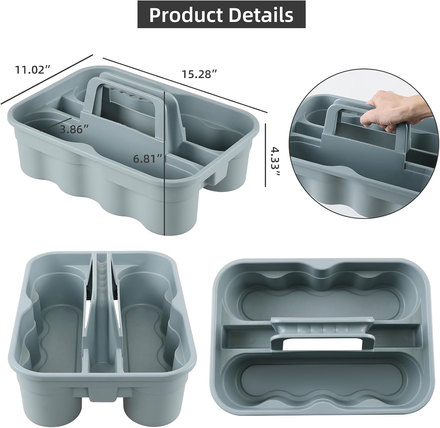 - Cleaning supplies caddy measures size of 15.28 in (L) x 11.02 in (W) x 6.81 in (H)