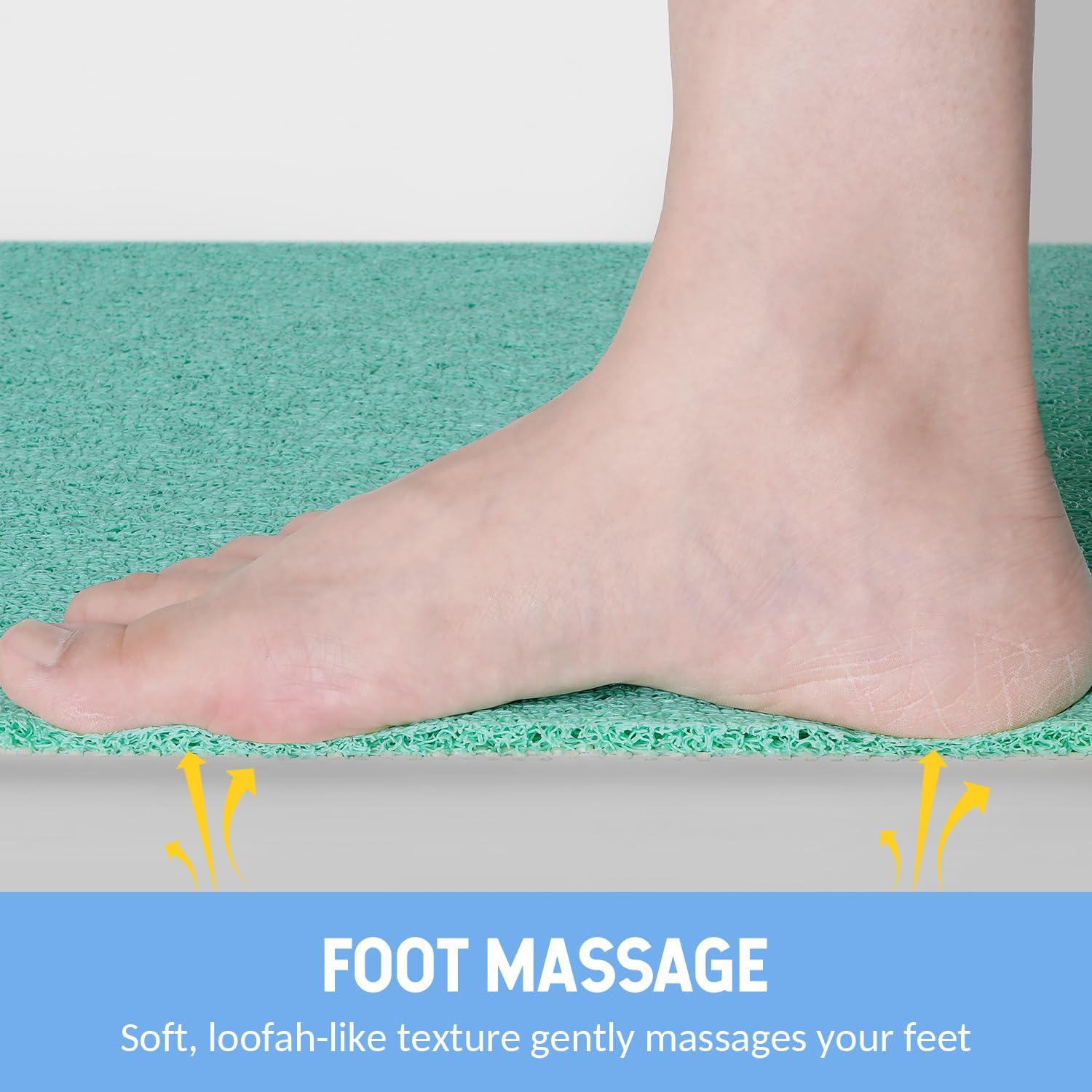 - 【Quick Drain & Perfect Size】The bath mat has hundreds of small drain holes to allow water to circulate. Water flows quickly through the bath mat without getting stuck. You can also cut the mat to any size and shape you need, so this mat will fit perfectly in any corner of your home.