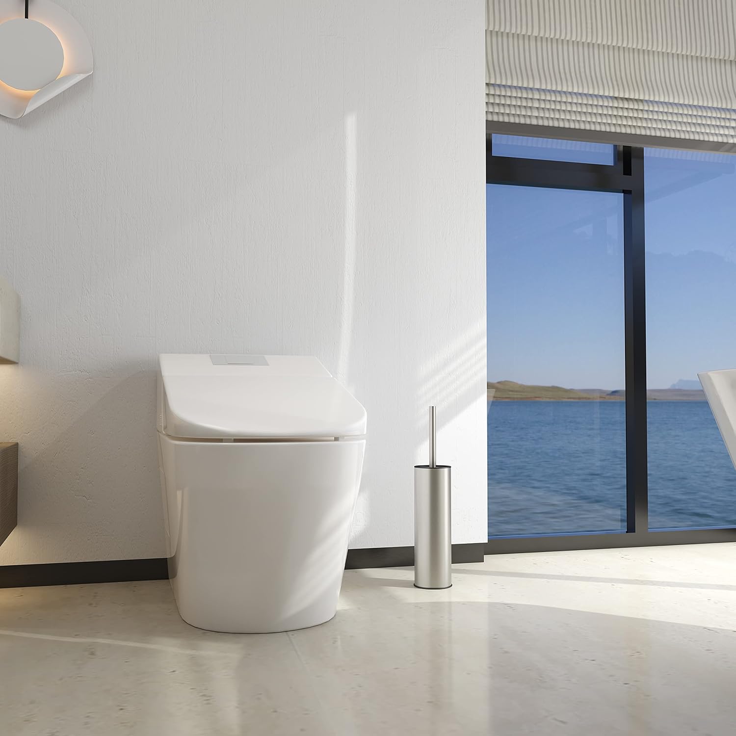 - Splash-proof design:BGL brushed nickel toilet brush set has a cover at the handle to prevent the sewage from splashing on the hand when cleaning the toilet. The cover baffle design protects your hands from stains and block the spread of odors, prevents scratching the toilet when cleaning.