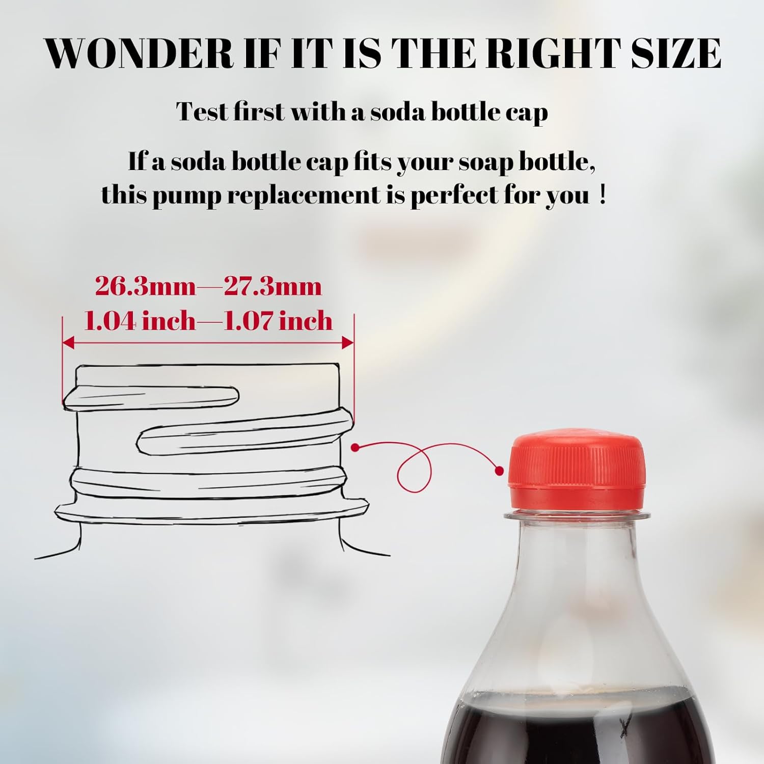 - STANDARD FIT - Standard size that fits most liquid pump bottles with 28/400 thread size. Test with a 2-litre coke bottle cap.If it fits, this pump is perfect for your lotion or soap bottle!