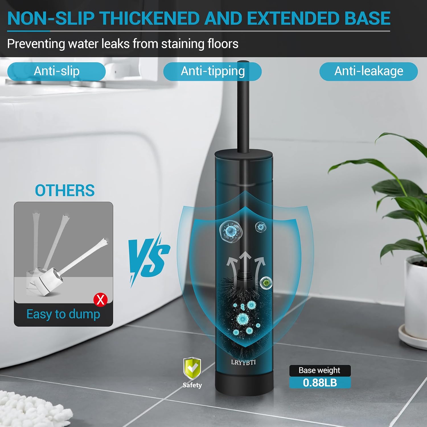- COMPLETE SET: Includes a toilet brush with holder and 2 replacement black bristle heads for extended use and thorough cleaning