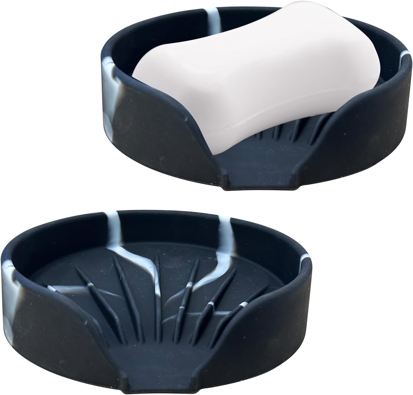 Self Draining Soap Dish, Silicone Suction Cup Soap Holder Tray Savers Container Sponge Holder for Bar Bathroom Shower Kitchen Sink, Can Extend Soap Life (2, Marble)
